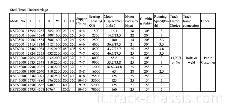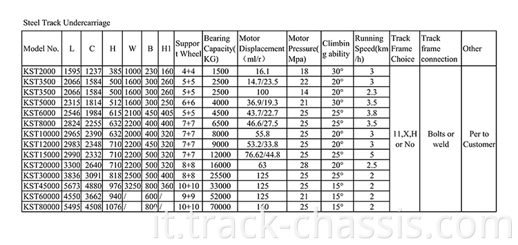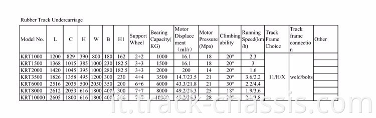 SPECIFICATIONS FOR 3 TON RUBBER CRAWLER TRACK