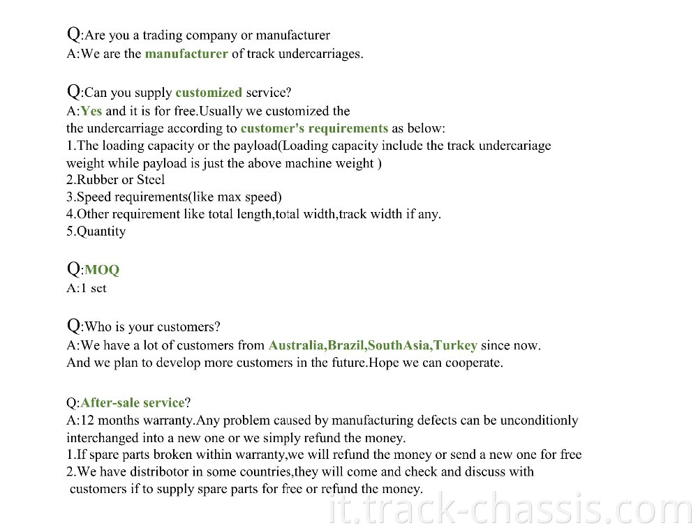 1. Telaio cingolato personalizzato. Possiamo personalizzare il sistema cingolato in base alle esigenze del cliente.