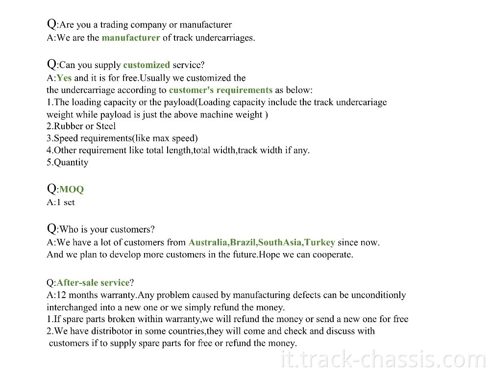 Di solito il facetry della macchina comprerà il telaio crawler da noi e si collegherà alle loro macchine.